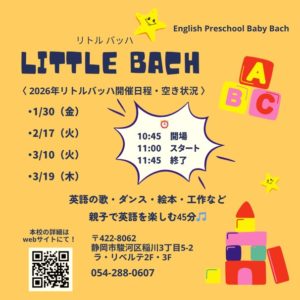 親子で楽しむ 英語レッスン『リトルバッハ』のご案内です🎶