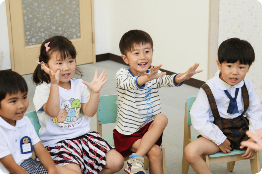 耳が慣れていないうちは、わからないことも多いかもしれません。しかしレッスンの中でクラスメイトや先生と接するうちに、生徒さんたちは耳と体で自然に英語を理解してきますので、長い目で見守ってあげて下さい。